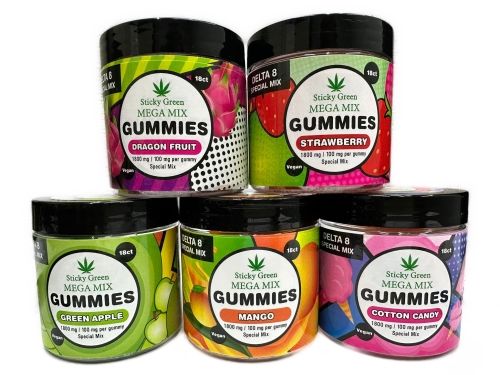 Sticky Green D8 18ct 1800mg Gummies Dragon Fruit